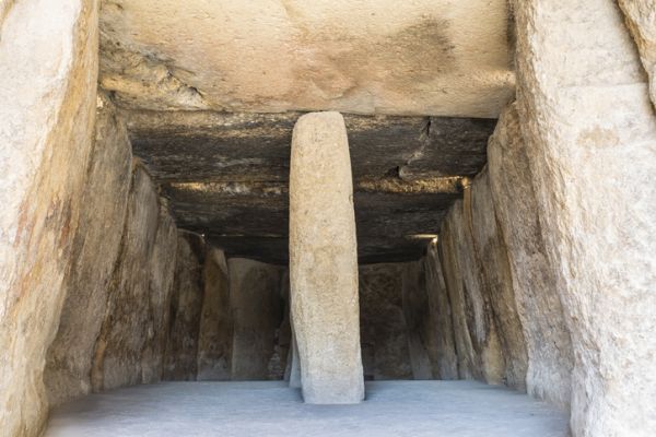 Mientras que en la Edad del Bronce, la sociedad está muy jerarquizada, hay muestras de enterramientos domésticos y aparecen las grandes arquitecturas megalíticas de los dólmenes. Es la Cultura del Argar.