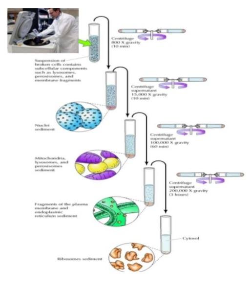 Es una técnica por la cual se aíslan y separan los orgánulos celulares con el fin de poder posteriormente, estudiarlos. Su metodología será la siguiente: