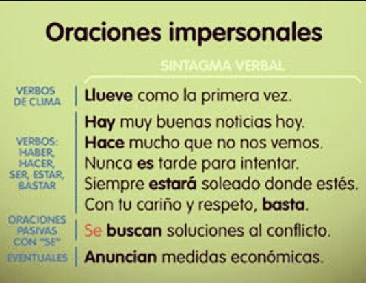 Hasta aquí has conocidos los verbos impersonales, también llamados unimembres. Se sabe que son frases donde no se encuentran explícito el sujeto. Por otro lado, explicamos de qué manera se podían identificar, los tipos de verbos impersonales recalcando que son: ocasionales, gramaticales, reflejas, semánticos, se, meteorológicos y gramaticalizadas. Finalmente también citamos algunos ejemplos por cada tipo de verbos impersonales. Como ves, una clase de lengua en toda regla, que esperalesamos te haya servido.