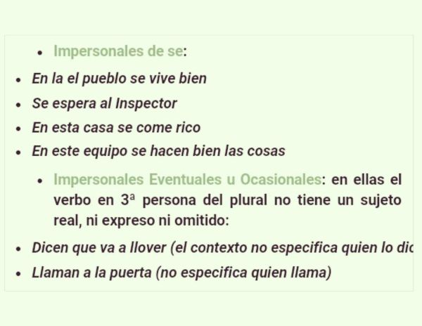 - No se debe suponer que exista dentro de la oración algún sujeto implícito.